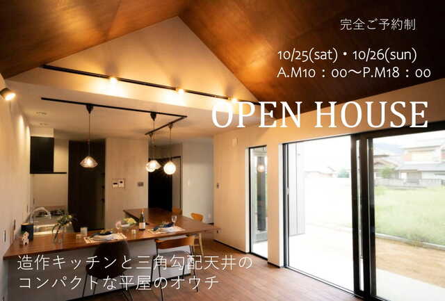 造作キッチンと三角勾配天井の